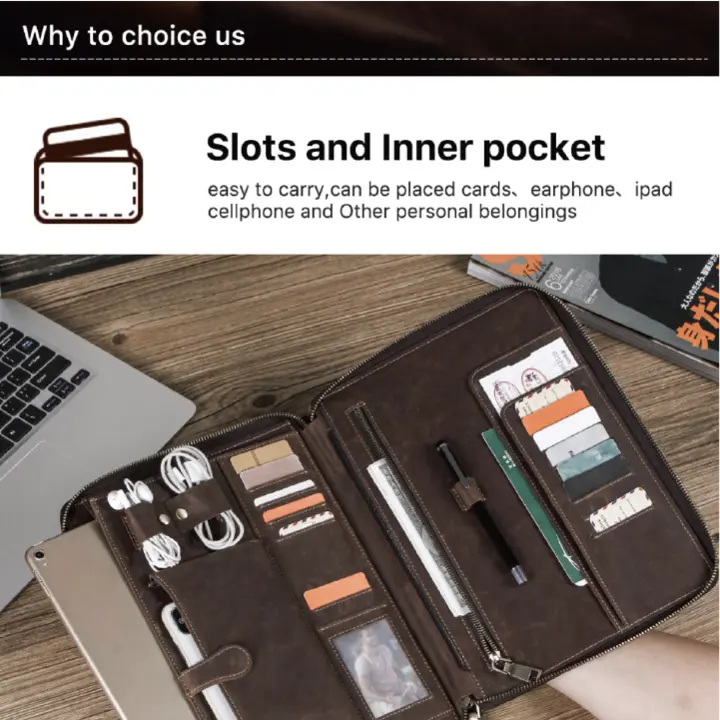 Searched and searched for a nice quality leather folio that would fit my MacBook Air and replace my briefcase. This one is very good quality. Leather is thick and has that great leather smell. Loving it. You should just get it.