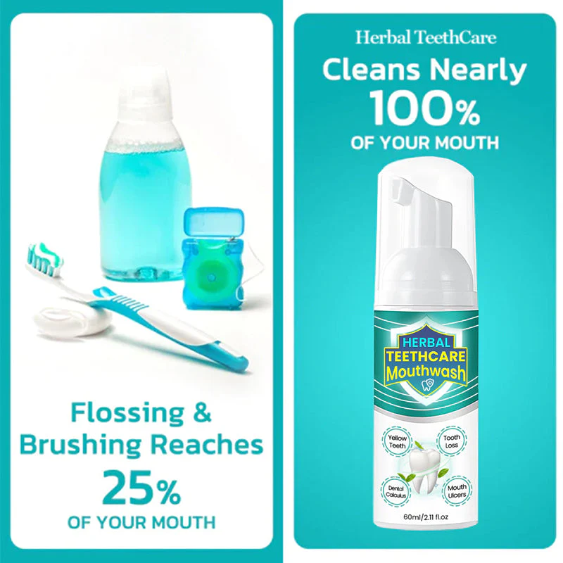 HERBAL TEETHCare Mouthwash can assist in eliminating dental plaque, calculus, and germs, among other concerns. Regardless of whether your teeth are yellow or black, it can achieve complete whitening within just 1 week.
