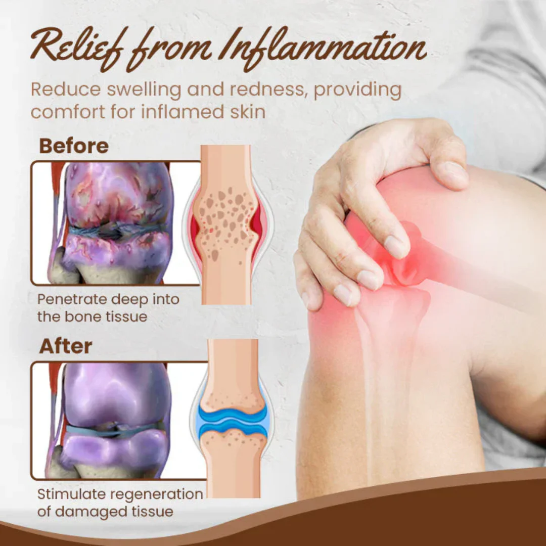 Our product utilizes advanced transdermal technology, which allows its active ingredients to effectively permeate the skin barrier and target the underlying tissues. When applied to the skin, it interacts with receptors involved in pain perception and inflammation. This interaction could lead to the modulation of inflammatory pathways, potentially reducing the release of pro-inflammatory molecules that contribute to joint and bone swelling. It also stimulates the regeneration of damaged cells and tissues, aiding in the recovery process.