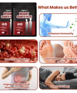 In recent pilot studies conducted by leading independent research laboratories, Higher™ Herbal Height Increasing Foot Patches have shown promising results. Subjects between the ages of 14 and 35 reported an average height increase of 2-6cm after consistently using the patches for two months. Moreover, the studies indicated that the patches contribute to improved sleep quality, which can expedite the effective stimulation of human growth hormone (HGH) production by the proprietary blend of natural herbs used in our patches, thereby achieving rapid height increase.