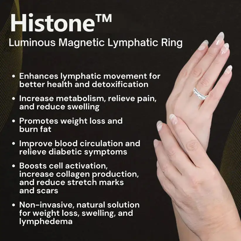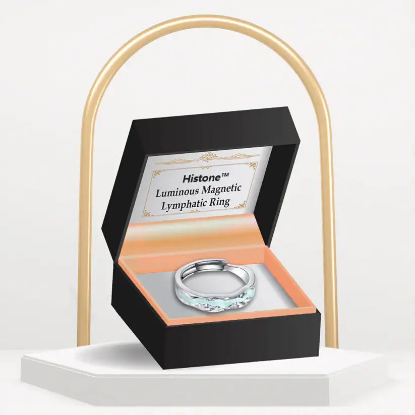 The Histone™ Luminous Magnetic Lymphatic Ring utilizes the power of natural high-quality magnets, titanium, and germanium to create a comprehensive solution that promotes improved lymphatic circulation, reduces swelling, supports detoxification, and enhances metabolism. These materials work in synergy to offer a natural, non-invasive approach to enhancing overall health and well-being.
