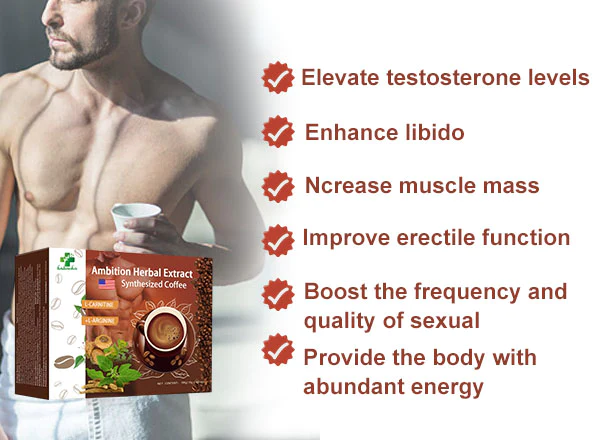 The herbs in Ambition Herbal Extract Synthesized Coffee contain a variety of plants, whose extracts are commonly used as natural herbal supplements, believed to have the effect of promoting testosterone. This herbal blend is specifically formulated to stimulate the secretion of male hormones, primarily including testicular hormones. Testosterone is a key male sex hormone, playing a crucial role in male energy and sexual function. By increasing testosterone levels, the supplement can enhance libido, increase muscle mass, improve erectile function, and elevate the frequency and quality of sexual intercourse, leaving the body full of vitality.