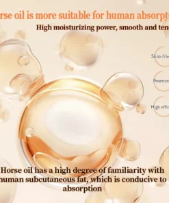 - Horse Oil: Harnessing the natural power of horse fat, this advanced formula penetrates deep into the skin to deliver intense hydration and nourishment, restoring skin’s smoothness and elasticity. Rich in fatty acids and antioxidants, it helps repair damaged skin, reduce irritation, and improve overall skin texture for a soft, revitalized, and radiant complexion.