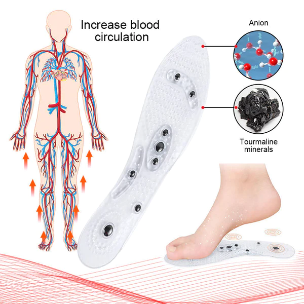 Magnetic Acupressure Insoles combine traditional acupressure with three advanced scientific innovations: Magnetic Acupressure, Far Infrared Therapy and Negative Ion Therapy, which help improve blood circulation, boost metabolism, reduce fat, lose weight, reduce stress, and in crease energy levels.