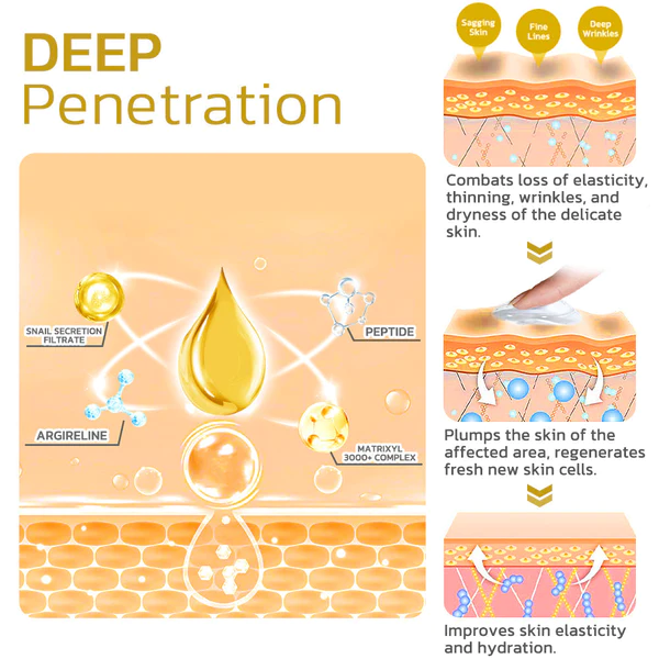 The Humxf™ Snail Mucin Multi-Peptide Advanced Repair Cream is formulated to reduce and lift wrinkles on the skin. Its key ingredients, including snail secretion filtrate, Matrixyl 3000+ Complex, Argireline, and peptides, work together to promote collagen production, increase skin thickness, stimulate cell regeneration, and reduce the appearance of wrinkles and fine lines. When applied to the skin, it helps to replenish the skin’s collagen levels, which can help to reduce the appearance of fine lines and wrinkles. It also helps to improve skin hydration, making it look more plump and youthful.