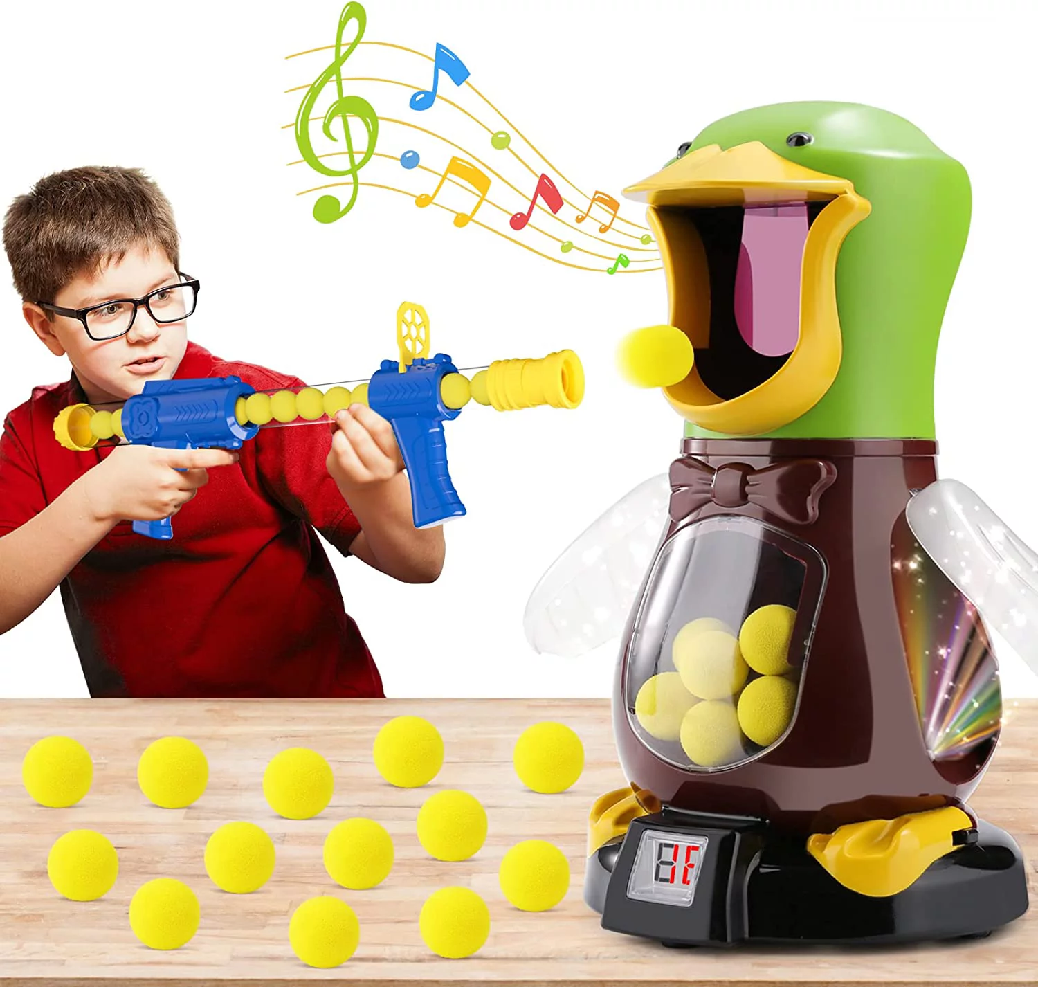 The Hungry Duck Shooter Toy Set is a versatile and fun toy that’s perfect for kids and adults alike. This set comes with a battery-powered duck that spins and makes realistic quacking sounds as it moves within limited range.