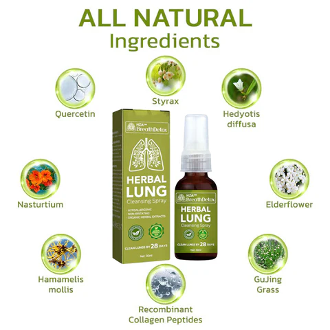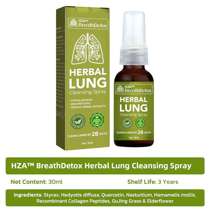 The HZA™️BreathDetox Herbal Lung Cleansing Spray offers a convenient and effective solution for clearing mucus and waste from the lungs, as well as purifying and cleansing the upper respiratory passages. It is specifically designed to repair damage caused by allergies, asthma, dust, and smoking within a span of 8 weeks. This innovative product provides individuals with weakened respiratory systems an effortless opportunity to restore their breathing capacity.