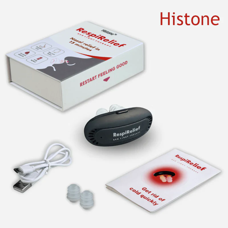 The Histone™ RespiRelief Red Light Nasal Therapy Instrument can enhance breathing by addressing various respiratory issues that may be causing difficulty in breathing or discomfort. The device utilizes low-level red light therapy, which has been shown to have several benefits for respiratory health. Like reducing inflammation, clears nasal congestion, and better oxygen exchange for a more efficient breathing.
