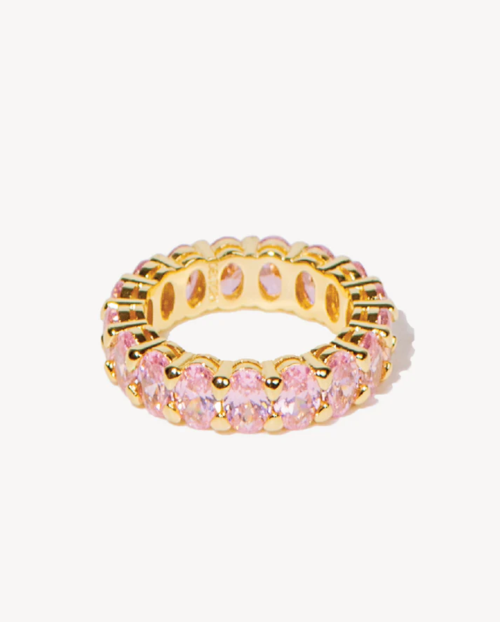 It’s time to go glamorous with the Iconic Nina Gold Ring. Hand-crafted in 14k gold plating, this pink eternity ring is inspired by timeless design. Featuring a band filled with glittering pink cubic zirconia. A piece fit for royalty, make heads turn in this eye-catching design.