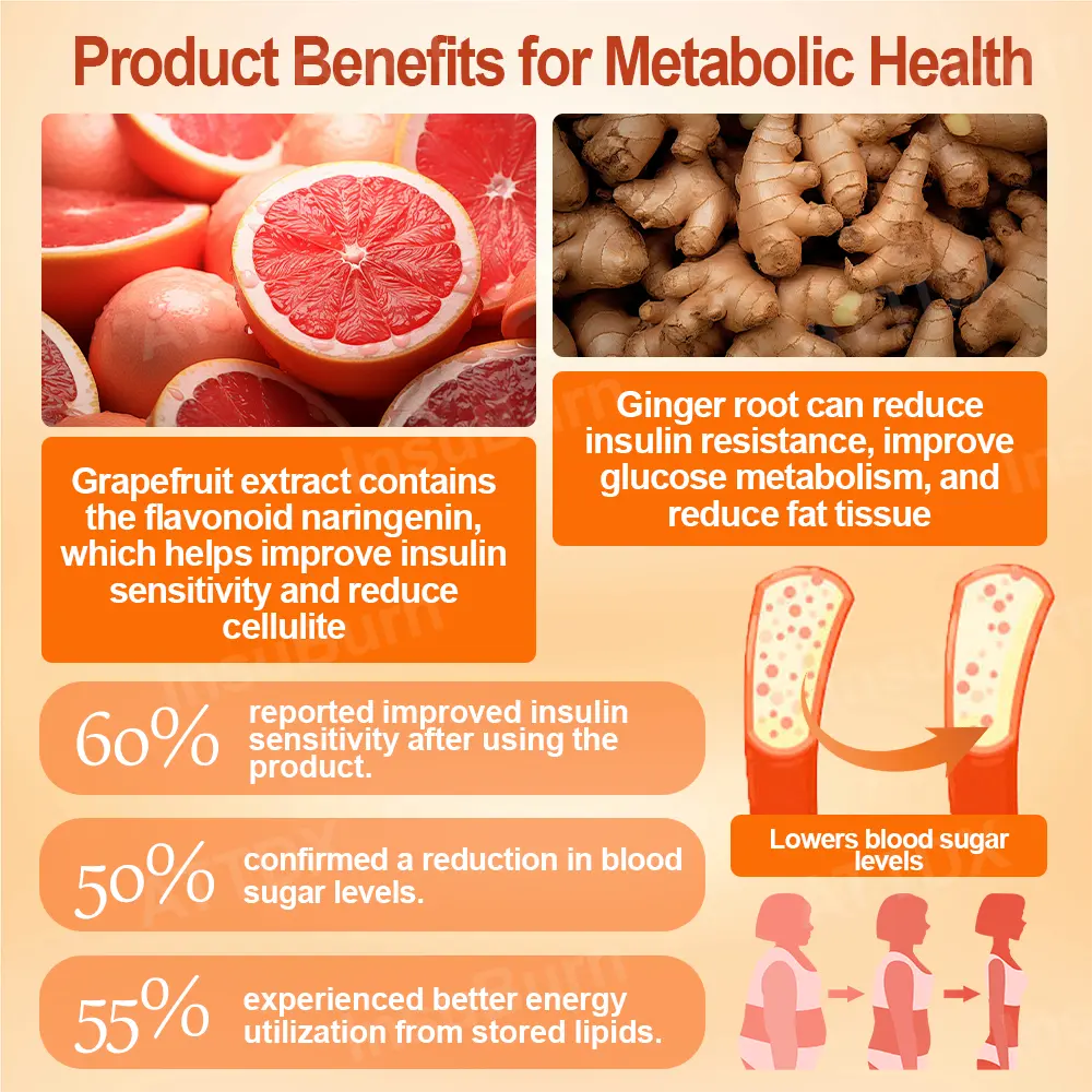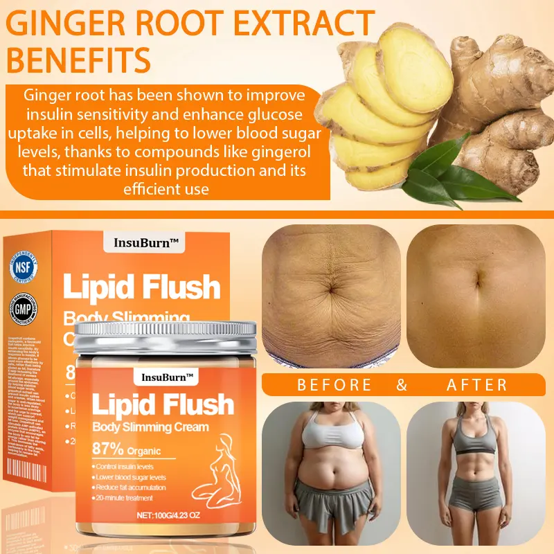 InsuBurn™ LipidFlush BodySlimming Cream uses powerful natural ingredients for weight management and skin health. Grapefruit Extract boosts insulin sensitivity, helping manage blood sugar and reduce fat storage. Ginger Root improves glucose metabolism and reduces insulin-linked inflammation. Aloe Vera hydrates and calms the skin, while Cedarwood helps curb stress-related cravings. Finally, Coenzyme Q10 enhances cellular energy and lipid metabolism, supporting a healthier, firmer skin texture.
