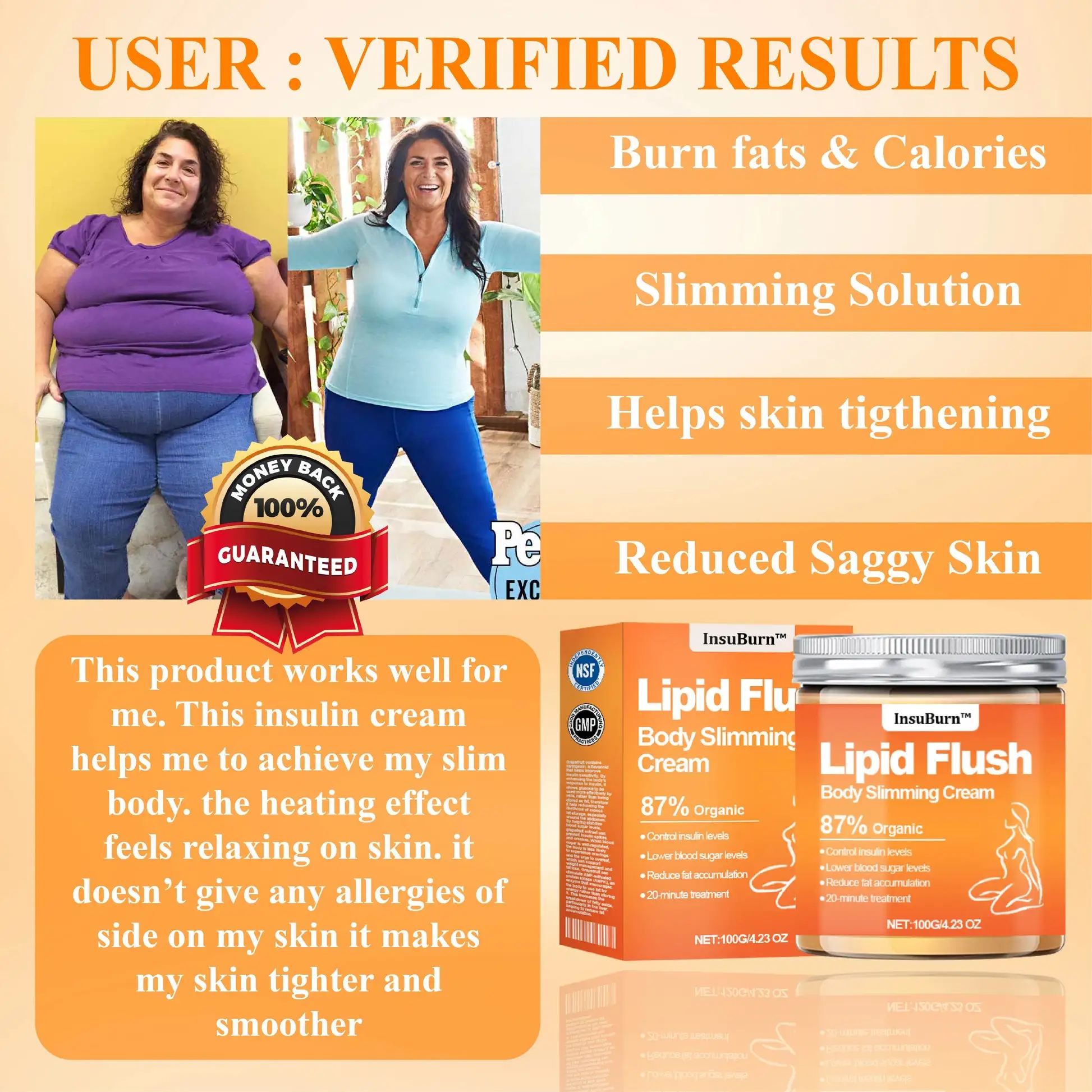 By improving insulin regulation, this cream not only aids in weight management but also helps users achieve smoother, firmer skin. Users have reported noticeable changes in their body composition, feeling lighter and more confident in their appearance. The combined effects of grapefruit extract and the cream’s innovative formulation make it a valuable addition to any wellness routine aimed at tackling stubborn lipid deposits and cellulite. InsuBurn™ Lipid Flush Body Slimming Cream represents a holistic approach to achieving desired body goals through improved metabolic health.