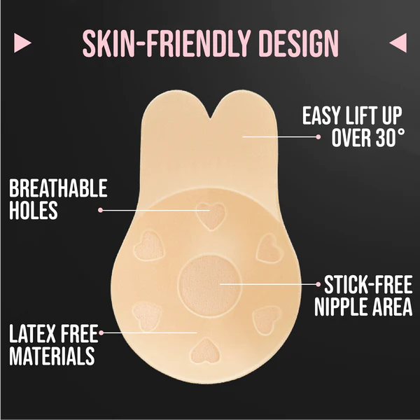This rabbit bra is designed with adhesive rabbit ear & 3D full coverage cutting, offering ultimate support to lift your breasts and to create natural cleavage. Free to cut to snugly fit any clothing!