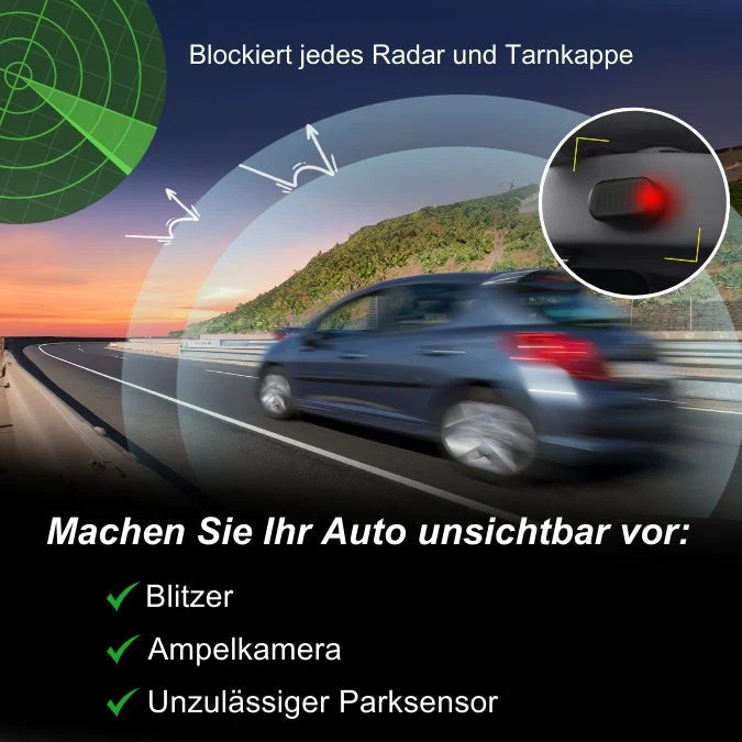 Schirmt Ihr Fahrzeug vor Geschwindigkeitskameradetektion ab.
