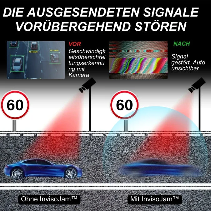 Unsichtbarkeit vor Geschwindigkeitskameras: Stört Signale, die von Geschwindigkeitskameras verwendet werden, und macht Ihr Fahrzeug praktisch unsichtbar. Fahren Sie selbstbewusst, ohne sich um automatische Geschwindigkeitsüberwachung sorgen zu müssen.