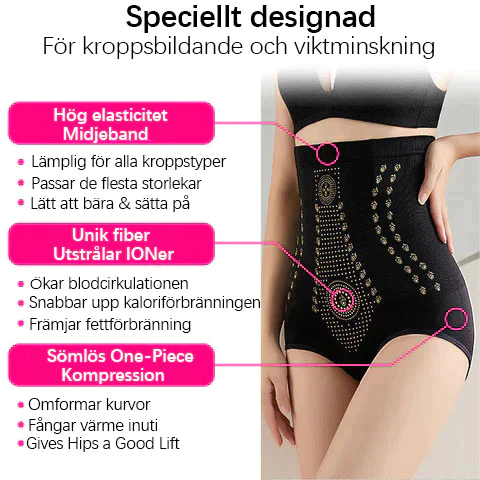 Med hjälp av både IONer som strålar ut från Unikt Fiber och den Sömlösa One-Piece Compression body–forming egenskaperna hos vår shaper, kommer du att kunna gå ner i vikt, bränna fett och forma dina höfter. Detta möjliggörs av den koncentrationen av IONer runt midjan som riktar sig mot magfett och shaping–egenskaperna hos kompressionspassformen i vår shaper.