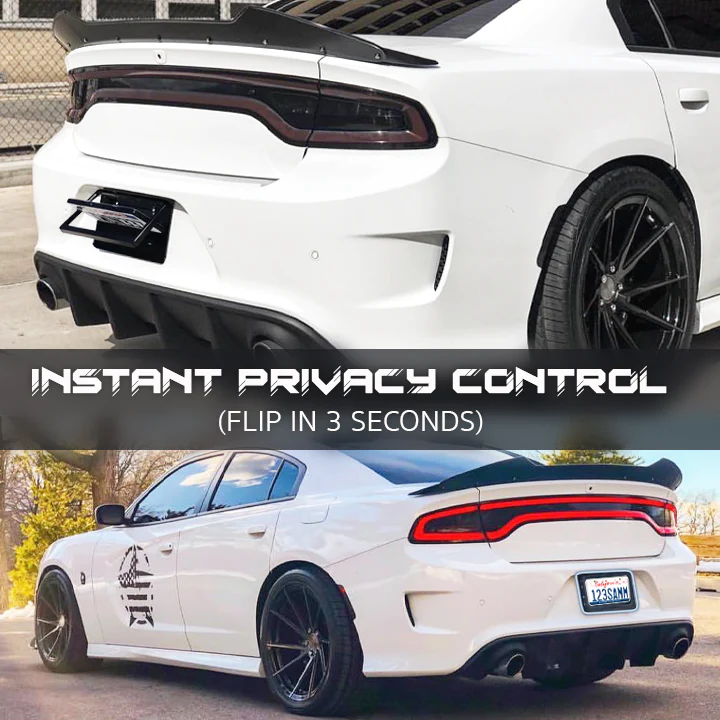 Allows the user to hide their existing license plate and replace it with a different plate. This feature provides an additional layer of privacy and anonymity for the vehicle owner. With this type of car plate flipper, the device is designed to securely hold and display a secondary license plate. When activated, the mechanism flips or rotates the current license plate, concealing it from view, and simultaneously reveals the alternate plate in its place.