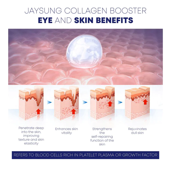 JAYSUING CollagenBooster Firming FaceSerum promotes collagen production, reduces fine lines and wrinkles, protects against environmental damage, and boosts the volume of your skin cell tissue. You will love the way this serum makes your skin look and feel brighter, smoother, and more hydrated. The key ingredient is a Botanical Hyaluronic Acid that has been shown to boost NAD+ levels in cells to keep them young, helping them resist damaging free radicals and preventing aging.