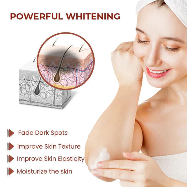 This fast-acting cream works by using an innovative technology to create fine pearl powder and texture that penetrates the deeper layers of the skin, reducing melanin on the top areas of the skin and removing the discolored spots. Its gentle formula makes it suitable for all skin types, its content offers potent antioxidant protection to help defend against environmental stressors such as UV rays and pollution.