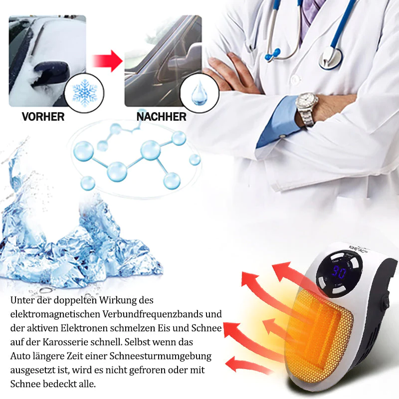 The KINETAC™ Portable Kinetic Molecular Heater features a internal suspension system. When activated, Internal structure causes molecular motion. The molecular movement releases kinetic energy, which not only prevents water molecules from freezing but also serves the fundamental task of heating the environment.