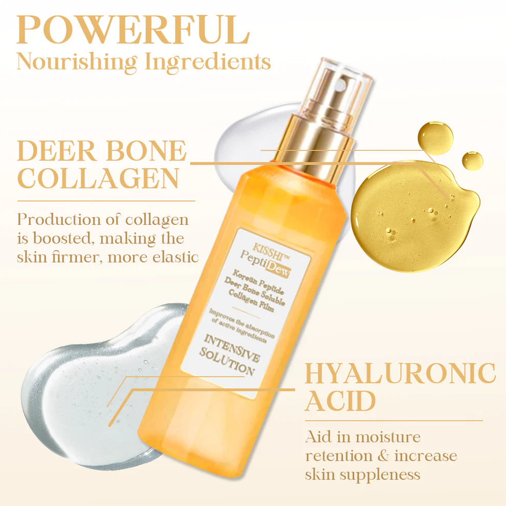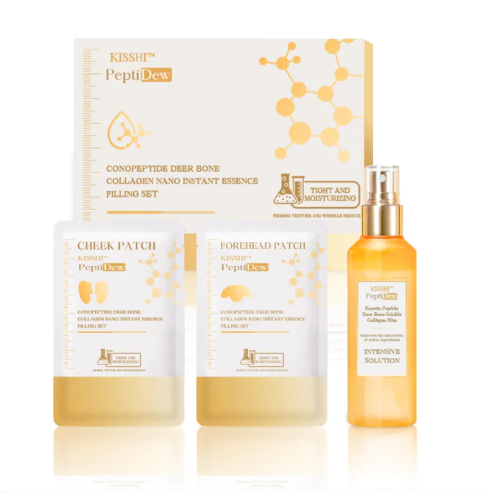 Improve your anti-aging skin care with Kisshi™ PeptiDew Korean Peptide Deer Bone Soluble Collagen Film. Manufactured in South Korea using patented US collagen nanofiber technology, this groundbreaking product helps promote supple, radiant and youthful-looking skin.