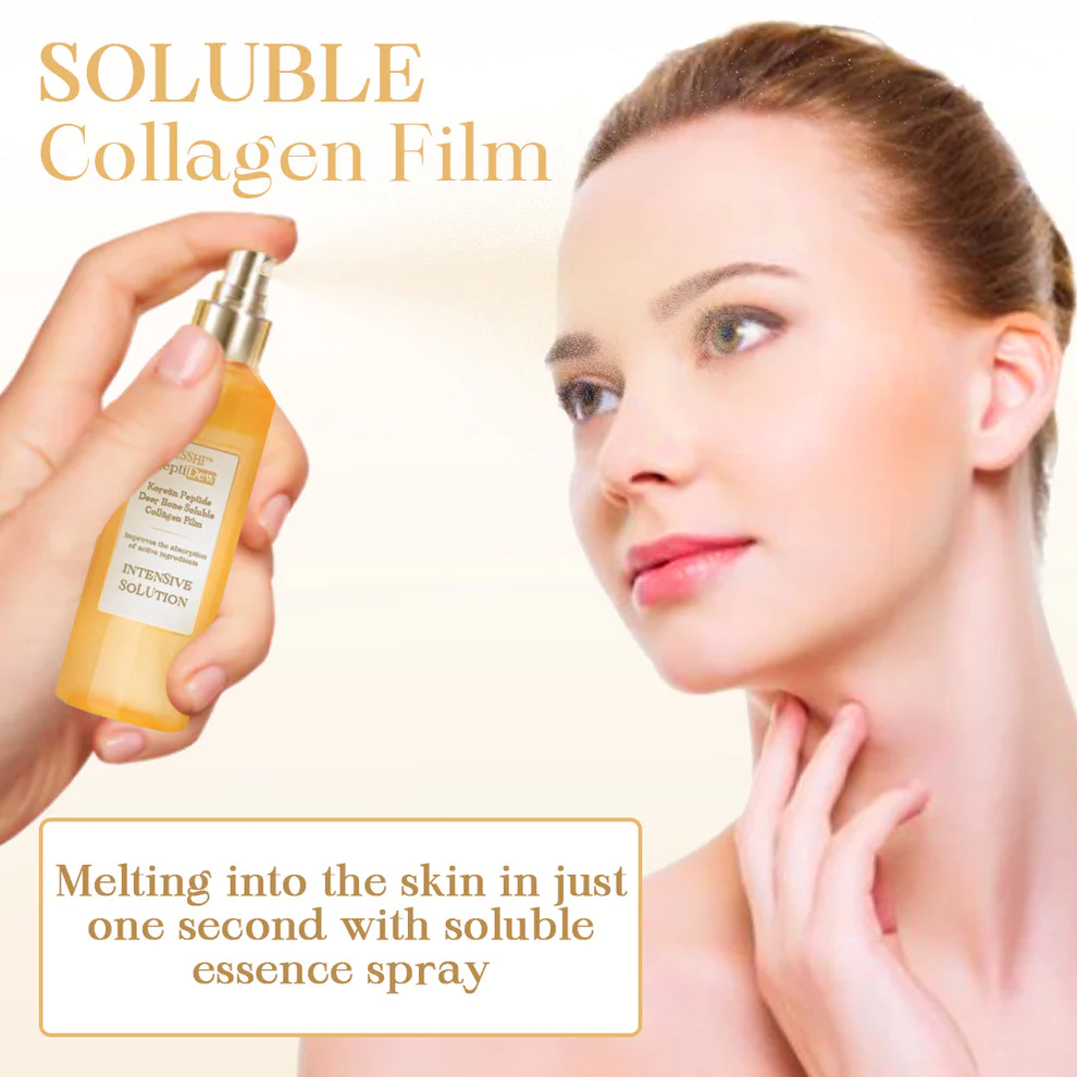 Thanks to this innovative technology, the collagen film becomes completely soluble and merges seamlessly with the skin. When the film comes into contact with the skin, it effortlessly dissolves the characteristic collagen essence through a nebulization process, facilitating the absorption of moisture in depth and improving elasticity and radiance. The result is a revitalized, more youthful complexion.