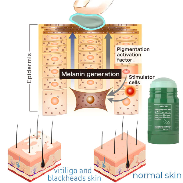 The physiological equilibrium of melanocytes and keratinocytes in the vitiligo epidermis is improved with Laimer® Green Tea Mask Stick. controls skin pigmentation with its all-natural formula, which can treat vitiligo and encourage the return of melanin.
