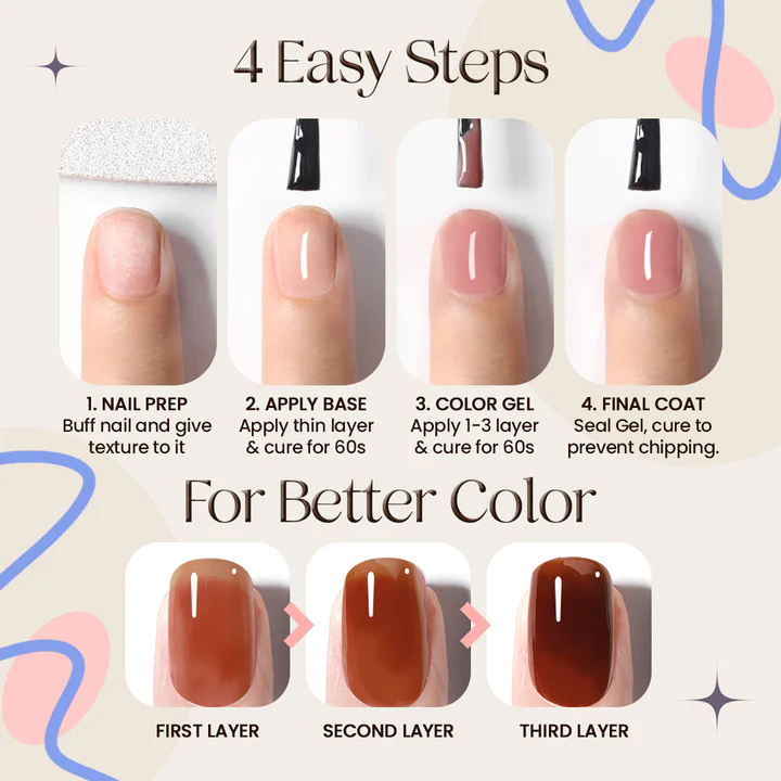 Pigments and Dyes: These provide color to the gel polish, offering a wide range of shades.