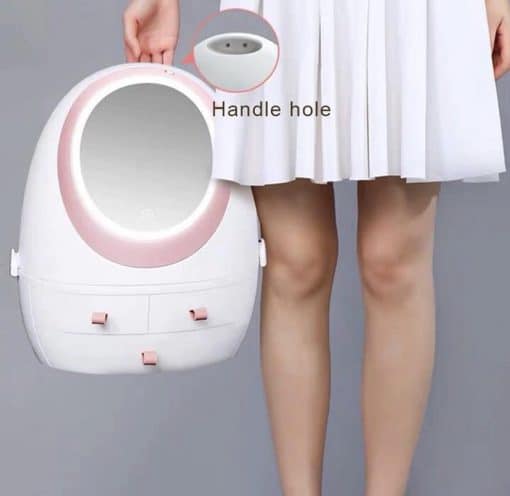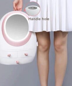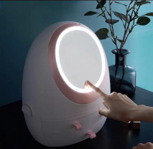 LED HD Mirror Makeup Storage Box Cosmetic Organizer Case