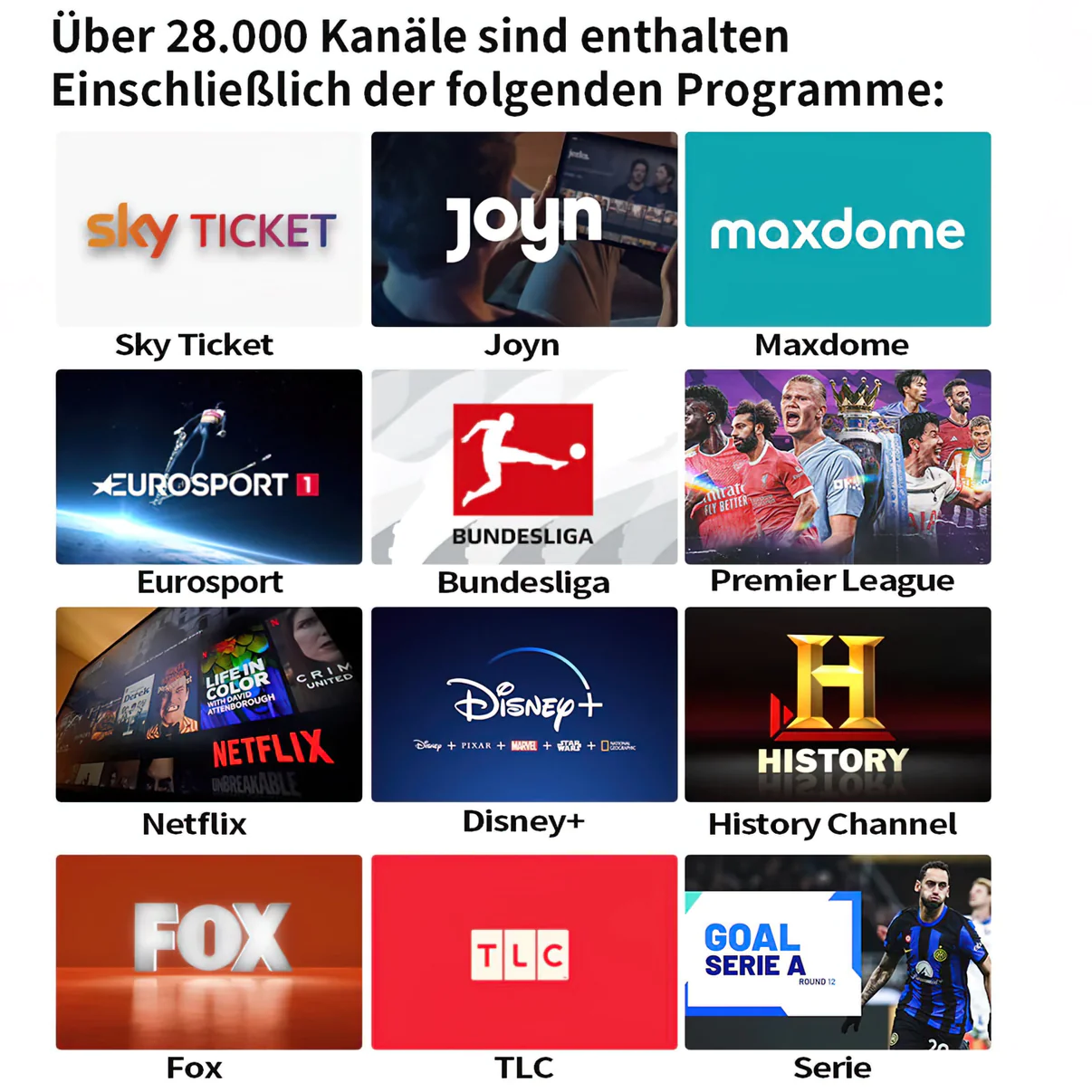 Entdecken Sie das LEFUN™ TV-Streaming-Gerät. Es ist eine kleine Box, die über einen HDMI-Anschluss mit Fernsehern, Computern und Projektoren verbunden werden kann. Seit 2003 verfügen die meisten Wiedergabegeräte weltweit über HDMI-Anschlüsse, was eine umfassende Kompatibilität gewährleistet. Nach der Verbindung funktioniert die Box ähnlich wie ein Satellit und ermöglicht den Zugriff auf Fernsehsender, Streaming-Apps und die neuesten Filme aus allen Ländern weltweit, einschließlich Apps wie DAZN, Sky Bundesliga, Sky Sport, RTL Passion, Netflix, Amazon Prime und mehr.