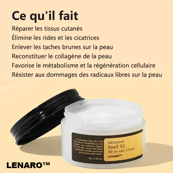 ” C’est la meilleure crème anti-âge et anti-rides !” a déclaré le Dr Bryant, spécialiste en dermatologie qui s’occupe du traitement des problèmes de peau depuis plus de 20 ans. “C’était l’un des rares produits sur le marché qui contenaient du collagène d’escargot, du complexe Matrixyl 3000+, de l’Argireline et des peptides dans la bonne consistance et le bon pourcentage. J’utilise cette crème tous les jours car je peux voir qu’elle m’aide à lutter efficacement contre le vieillissement de la peau.” “Pour moi, les salons de beauté sont coûteux, et la chirurgie esthétique est risquée. Selon les rapports, des milliers de personnes souffrent d’infections ou d’échecs chirurgicaux liés à la chirurgie du visage chaque année. La crème LENARO™ Korean Snail Collagen Lifting & Firming offre un moyen plus naturel, inoffensif et sans risque de lutte contre le vieillissement. Elle me permet non seulement d’économiser beaucoup d’argent, mais aussi d’accélérer naturellement le renouvellement cellulaire, de stimuler la régénération du collagène, d’augmenter l’épaisseur de la peau, et en même temps de former une couche protectrice, de réduire la perte de collagène et de restaurer le volume et l’élasticité de la peau.” – Dr Helen Bryant