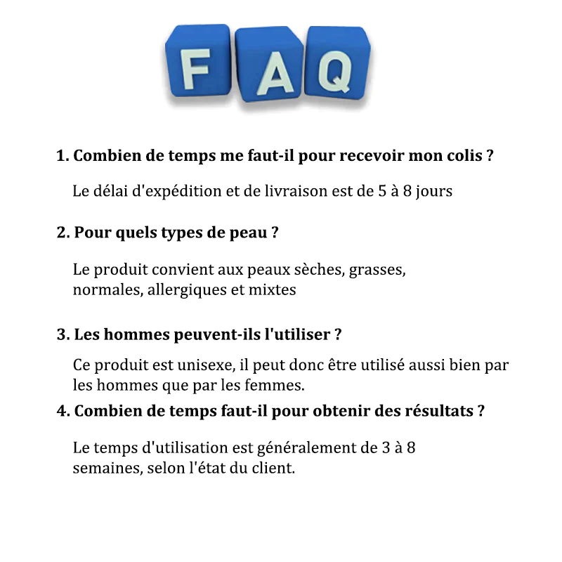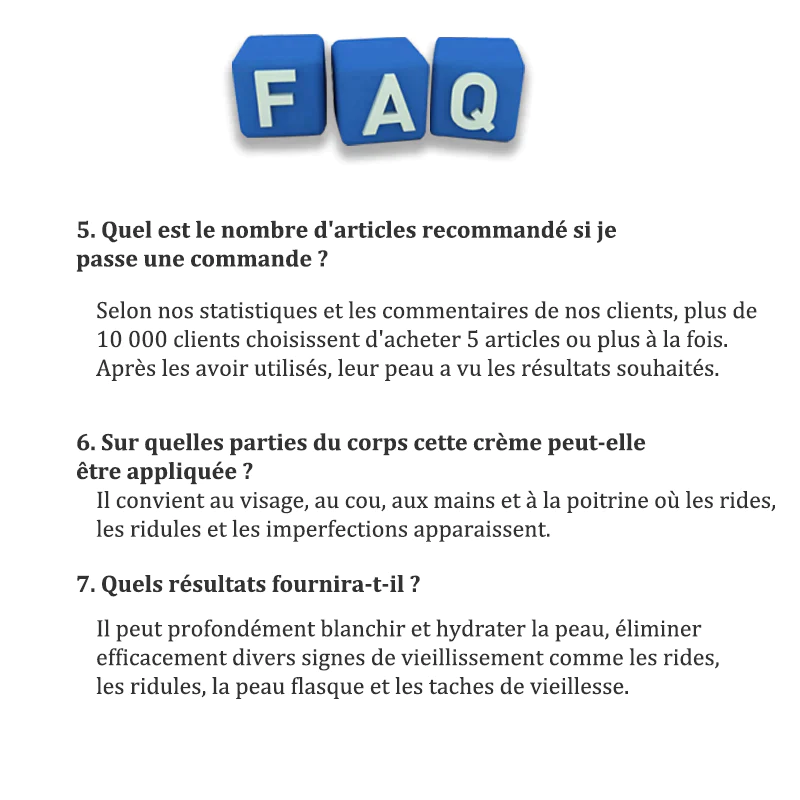 Élimine parfaitement les taches de la peau et répare les cicatrices. Son effet anti-rides est 50 fois supérieur à celui des autres produits anti-rides et est permanent.