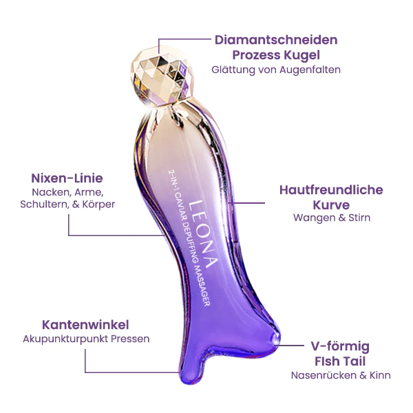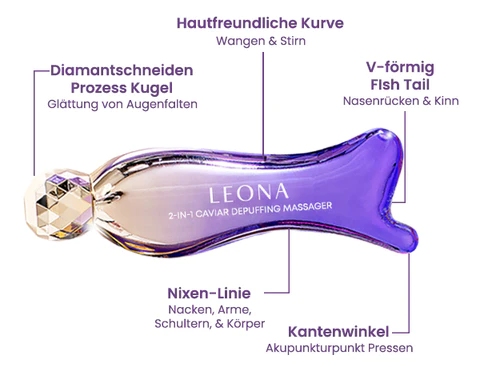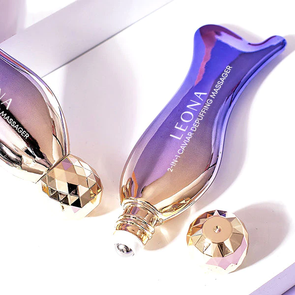 LEONA 2in1Kaviar Abschwellendes Augenmassagegerät, der die Vorteile eines Gua Sha-Werkzeugs und der Hautpflege in sich vereint. Dieses einzigartige Gerät hilft, Schwellungen, dunkle Ringe und feine Linien um die Augen zu reduzieren und fördert gleichzeitig die Lymphdrainage und die Durchblutung. Mit Leona können Sie ein luxuriöses und effektives Hautpflegeerlebnis genießen, bei dem Sie sich wohl fühlen und gut aussehen.