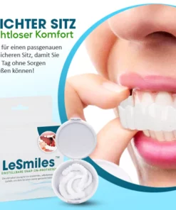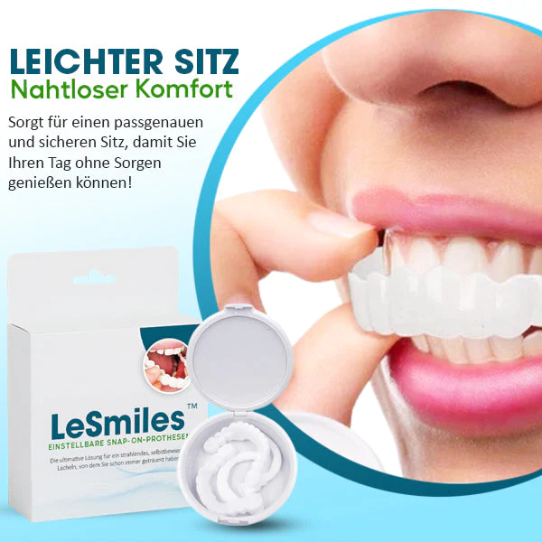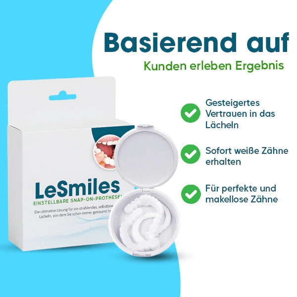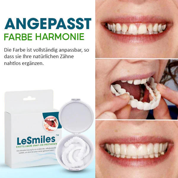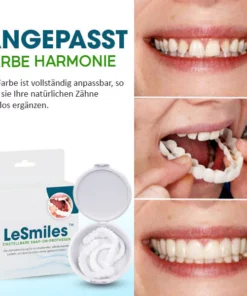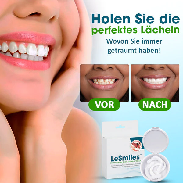 Ist Ihnen Ihr Lächeln oder Ihre unvollkommenen Zähne oft peinlich? Sie müssen nicht zum Zahnarzt gehen, um es richten zu lassen! Verwenden Sie stattdessen die LeSmiles™ Einstellbare Snap-On-Prothesen und erreichen Sie das perfekte Lächeln, von dem Sie schon immer geträumt haben, ohne dass es Sie ein Vermögen kostet!