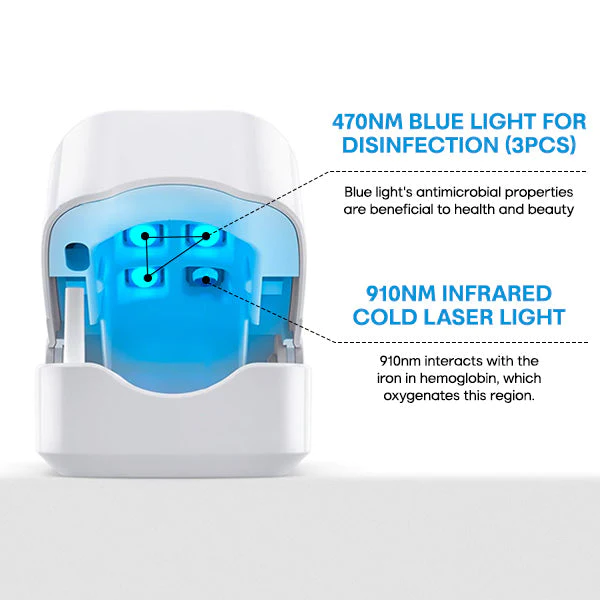 Liacsy™ AdvanceLight FootFix Device utilizes blue light therapy with a specific wavelength (470 nm) to treat nails. This form of therapy involves the exposure of nails to blue light, entering the nail’s surface layer and triggering a photodynamic response with the keratin. Oxygen molecules and free radicals are generated, leading to the destruction of bacteria and fungi surrounding the nail. Simultaneously, blue light possesses an antibacterial effect, reducing infection and alleviating inflammation, redness, heat, and pain. All of this is provided without the risk of side effects or developing drug resistance.