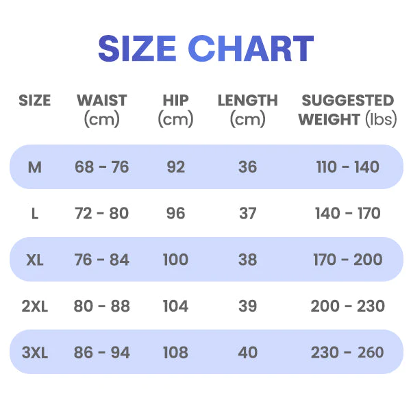 With the help of the IONs radiated by the Unique Fiber and the seamless one-piece compression thanks to the body shaping features of our shaper, you will be able to lose weight, burn fat and shape your hips. And this is possible thanks to the concentration of ions around your waist that targets belly fat and the shaping properties of the compression fit in our shaper.