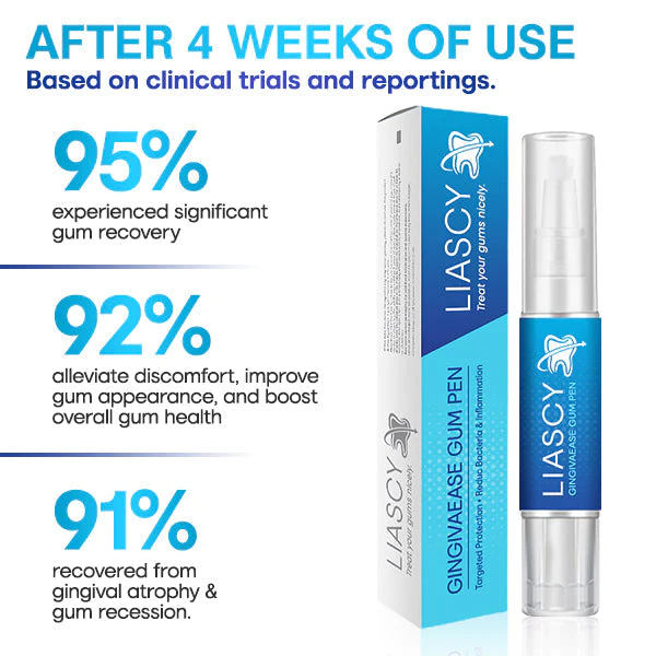 Week 4: I can’t express enough how much Liascy™ GingivaEase Gum Pen has done for my gum health. It’s not only nourished my gums but also brought a much-needed sense of comfort and relief. If you’re dealing with gingival atrophy or gum recession, I wholeheartedly recommend giving Liascy™ a try. It’s truly a game-changer that can bring back your smile and boost your confidence. Don’t hesitate – your gums will thank you!