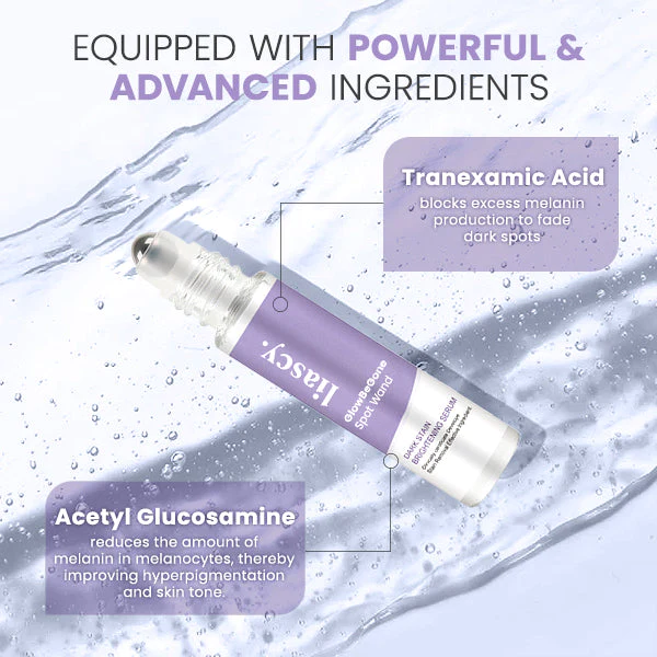 Liascy™ GlowBeGone Spot Wand, a cutting-edge solution meticulously formulated with a potent combination of 3% tranexamic acid and 5% acetyl glucosamine. This expertly crafted blend synergistically targets and progressively enhances the appearance of dark spots and discoloration. Leveraging the unique properties of tranexamic acid, known for its exceptional melanin-regulating capabilities, the formula effectively diminishes existing dark spots while impeding the emergence of new ones.
