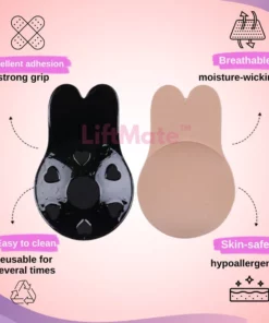 LiftMate™ features second-skin cups that offer great nipple coverage and a gentle lift with its body heat-activated hold and silicone adhesive. The bra is invisible under any outfit and eliminates the need for straps, extensions, back bands, and wires.