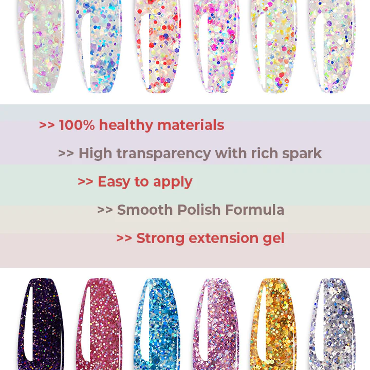 If you’re into nail extensions, our sparkling nail gel is the perfect product to accentuate your long nails without them breaking or chipping. The formula is safe to use and easy to apply, making it perfect for DIY, salon-quality nail extensions at home.