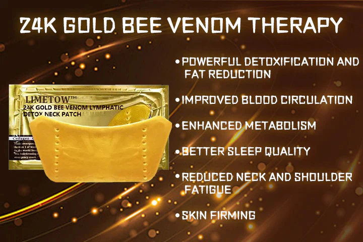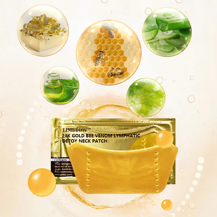We proudly introduce the LIMETOW™ 24K Gold Bee Venom Lymphatic Detox Neck Patch, an innovative solution targeting common health concerns. This therapy combines the potent properties of 24K pure gold and natural bee venom to effectively promote lymphatic drainage in a non-invasive manner. Experience the benefits of unclogged mammary meridians, accelerated weight loss, and noticeably firmer skin. This unique treatment leverages natural bee venom and luxurious 24K gold to enhance your body’s detoxification function and overall health. It not only promotes lymphatic drainage and toxin elimination but also reduces localized fat, making your life healthier and more vibrant.