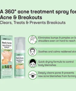 The LIMETOW™ Back Acne Treatment Spray is packed with a blend of natural clarifying ingredients and soothing plant extracts that helps prevent back acne and tackle existing zits while being gentle on skin.