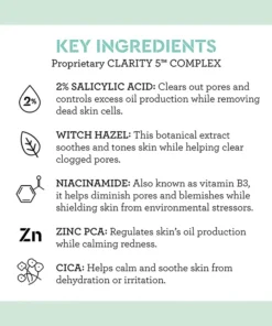 Salicylic acid is a type of beta-hydroxy acid that helps to exfoliate the skin and unclog pores, making it an effective ingredient for treating acne. It penetrates deep into the pores to remove excess oil and dead skin cells, reducing inflammation and preventing future breakouts. Additionally, salicylic acid has anti-inflammatory properties that can help to soothe and calm irritated skin.