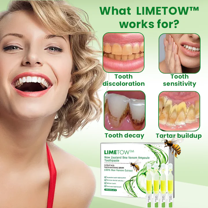 LIMETOW™ FreshPlus Bee Venom Ampoule Toothpaste can help you remove dental plaque, calculus, germs, etc., and make your teeth completely white within 1 week, no matter your teeth are yellow or black.