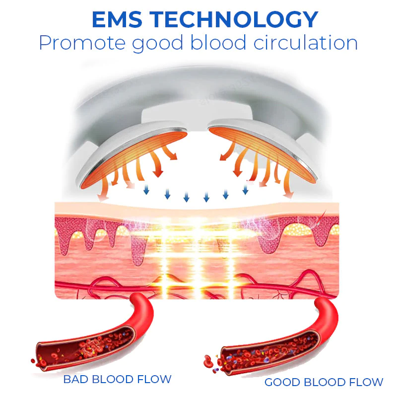 LipomaOut™ Neck EMS Ultrasonic Massager facilitates circulation because the pressure created by the massage technique actually moves blood through the congested areas. The release of this same pressure causes new blood to flow in.