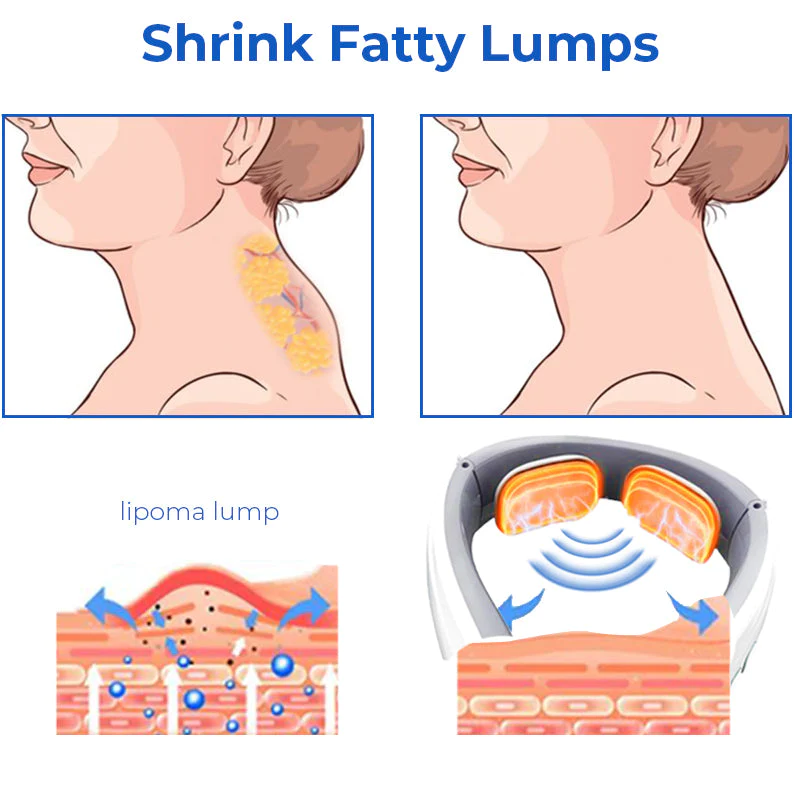 The LipomaOut™ Neck EMS Ultrasonic Massager is made using ultrasonic acupuncture-type stimulation that uses an electric pulse to alleviate body lipoma, avoid lymph node obstructions, improve blood circulation, and lessen the possibility of lipoma renewal.