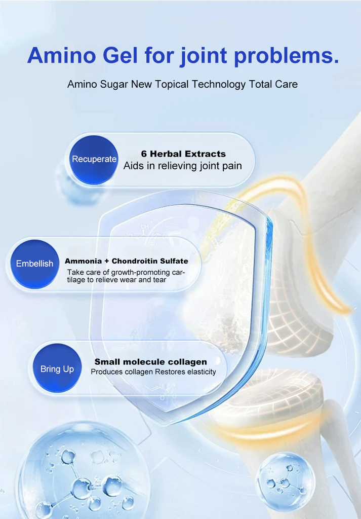 【Little Blue Tube Amino Chondroitin Joint Repair Gel】 provides fast relief of joint swelling and pain and safely and effectively eliminates 98% of orthopedic problems such as osteoarthritis, rheumatoid arthritis, bursitis, tendonitis, osteoporosis, gout, carpal tunnel syndrome, ligament sprains and strains, bunions, and tennis elbow in just 4 weeks.