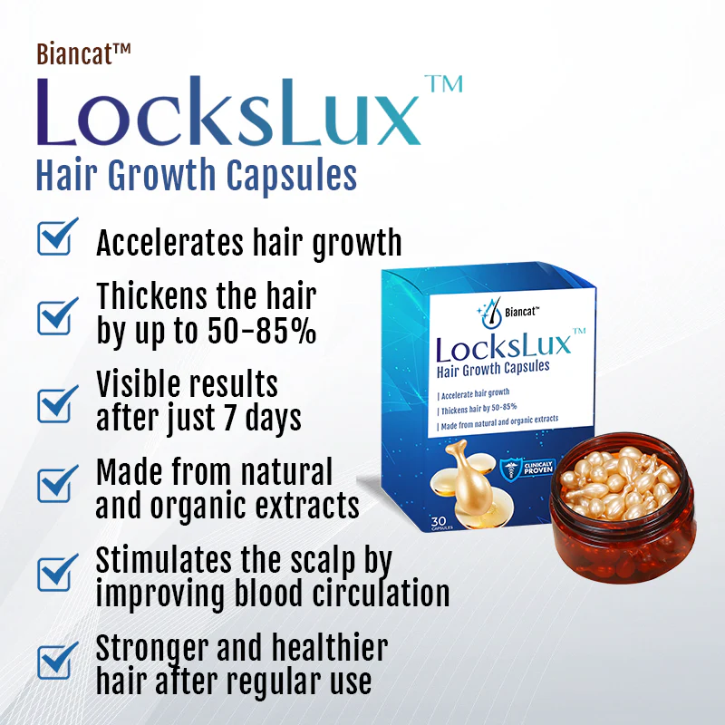 Unlock the secret to transformative hair care with Biancat™ LocksLux™. These expertly formulated capsules do more than simply promote hair growth; they rejuvenate your entire hair profile, encouraging robust growth from the roots to the tips.