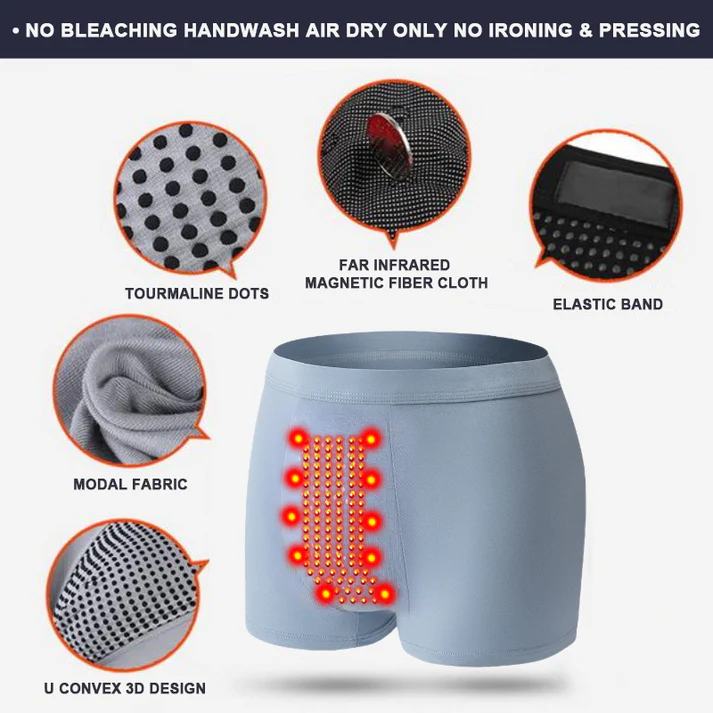 - Power of magnets. Specially designed for males and inspired by ancient non-invasive Magnet Therapy and Tourmaline technology. This adopts 22 magnets and Tourmaline fabric to generate a magnetic field around the ‘private area’ and the ‘back part’ to improve blood circulation.