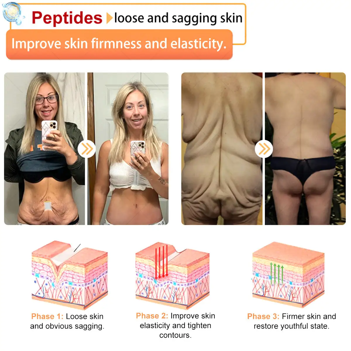 In addition. we have specially added effective ingredients like caffeine. vitamin C. shea butter. grape seed extract. and spirulina to help you reach your weight loss goals. Caffeine aids in accelerating fat burning. boosting metabolism. and supporting weight loss; vitamin C offers antioxidant benefits. improves skin tone. and helps tighten skin; shea butter deeply moisturizes. keeping skin soft; grape seed extract enhances skin elasticity and reduces sagging; and nutrient-rich spirulina promotes cell regeneration and maintains healthy skin. The combined effects of these ingredients support fat reduction while enhancing skin firmness and smoothness. helping you achieve better skin as you lose weight.