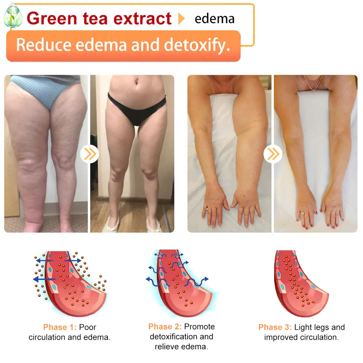 Green tea extract promotes lymphatic circulation. helping the body remove excess water and toxins to reduce swelling and water retention.